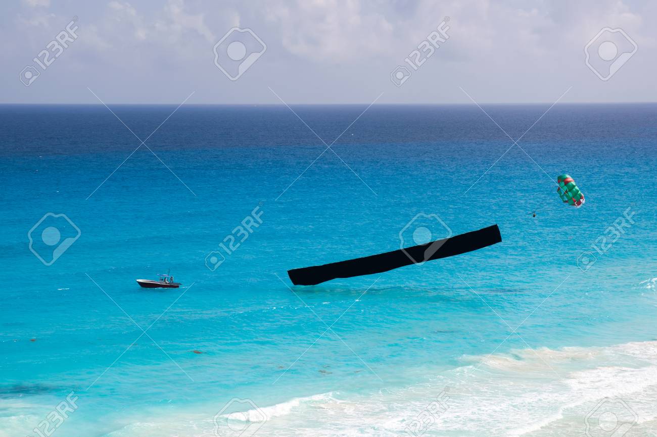 Immagini Stock Pubblicita Spiaggia Paracadute Barca Con Copyspace Image