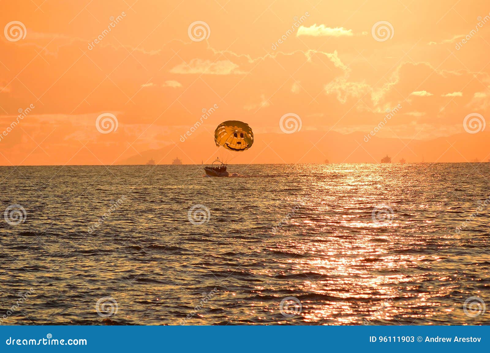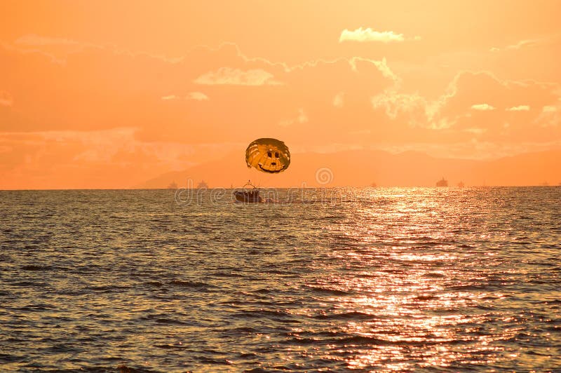 Barca Con I Paracadute Al Tramonto Immagine Stock Immagine Di Paracadute Sorriso