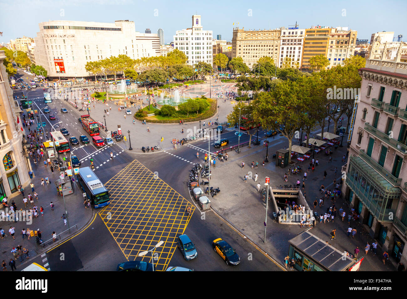 Plaza Catalunya Catalonia Square La Piazza Principale Di Barcellona In Catalogna Spagna Foto Stock Alamy