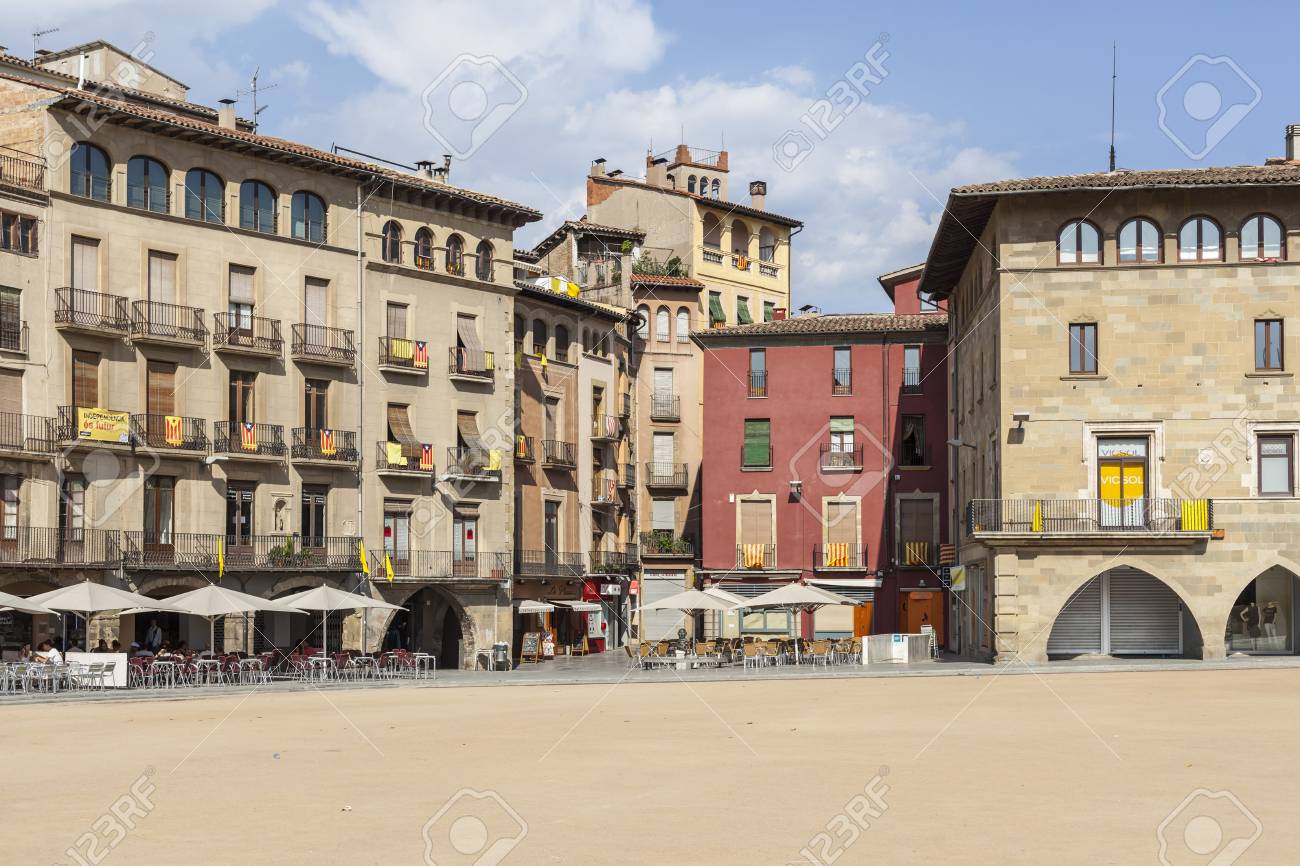 Immagini Stock Vic Spagna Luglio 19 15 Vista Della Citta Piazza Principale Plaza Major O Mercadal Vic Provincia Di Barcellona In Catalogna Image
