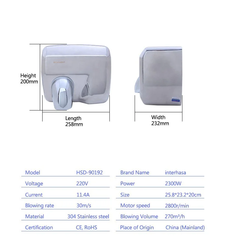Hand Dryers High Speed New generation high speed hand dryers available in Australia High speed hand dryers are costeffective, quick to use and can cut paper towel use by up to 98% Although they generally have a higher initial outlay than conventional dryers, high speed options have lower operating costs in the long term. AS concerning height of operative component "Where provided, hand dryers shall be operable by one hand, and shall be installed with the height of their operative component or outlet not less than 900 mm and not more than 1100 mm above the plane of the finished floor, and no closer than 500 mm from an internal corner". If possible, you should also install the dryer at least a metre away from reflective surfaces such as walls and mirrors This will prevent the sound of the hand dryer from echoing around the room Mounting height When it comes to mounting height, you should consider who will be using your washroom.