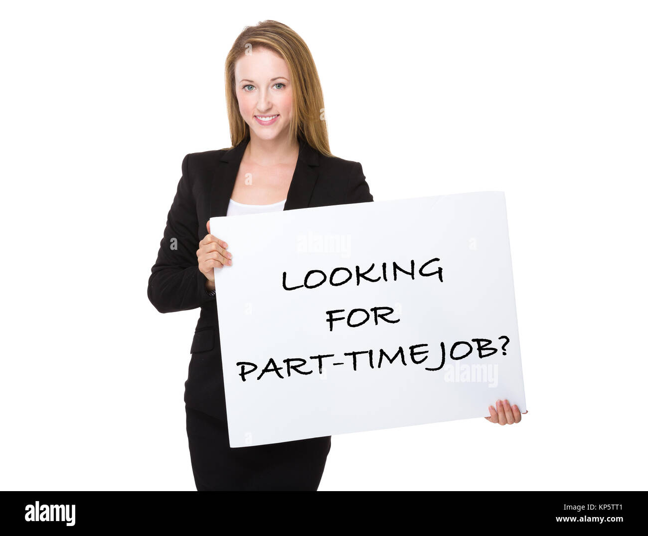 Imprenditrice Tenendo Premuto Con Un Cartellone Che Mostra Una Frase Di Ricerca Di Lavoro Part Time Foto Stock Alamy