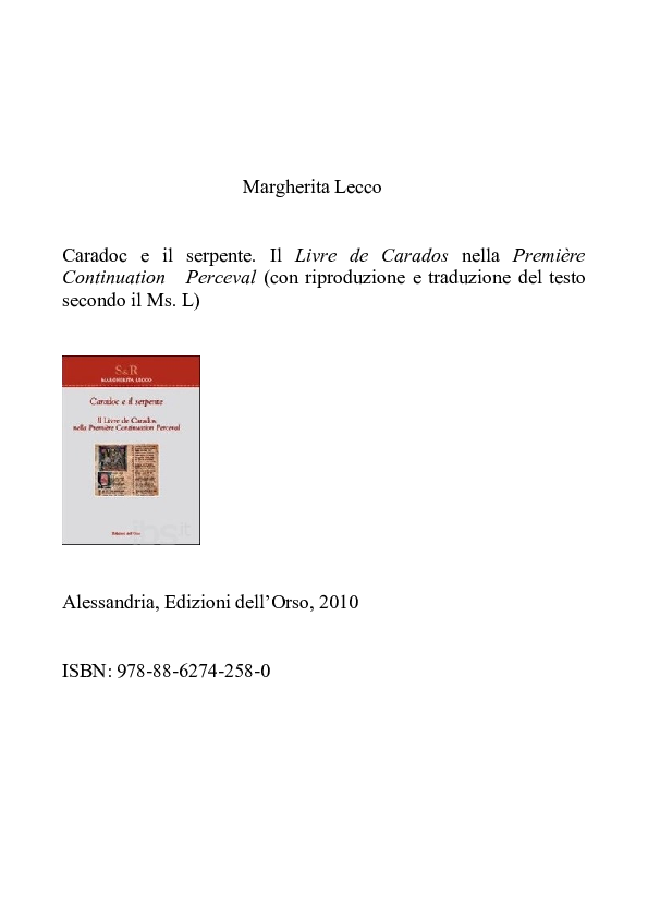 Caradoc E Il Serpente Il Livre De Carados Nella Premiere Continuation Margherita Lecco Google Books