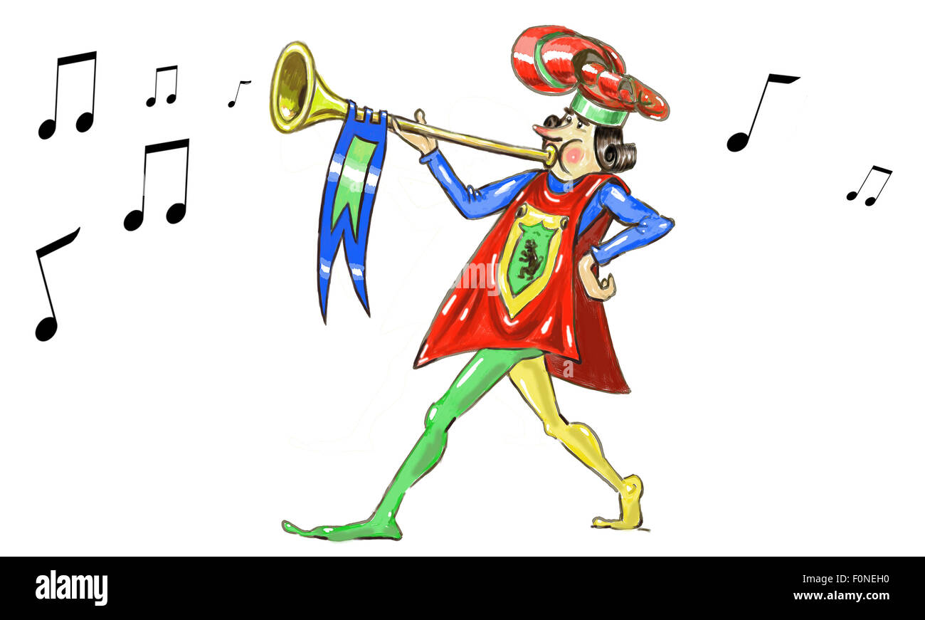 Carattere Medievale Suonare La Tromba Del Disegno A Mano Illustrazione Di Fantasia Foto Stock Alamy