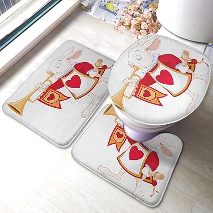 Qinzuisp Doormat Alice Nel Paese Delle Meraviglie Coniglio Che Suona La Tromba Reale Con Il Disegno Del Cuore Carta Di Animali Bambini Bianco Rosso Giallo Vivido Ufficio 3 Pezzi Tappetino D Amazon It