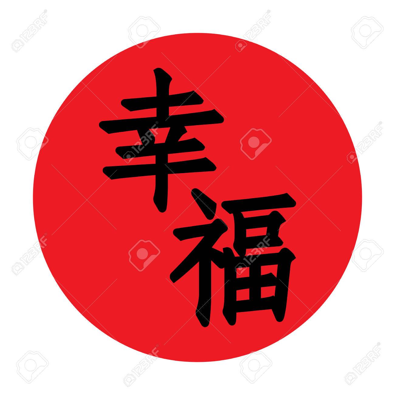 Vettoriale Sole Rosso Simbolo Del Giappone E La Parola Felicita Scritto In Geroglifici Image