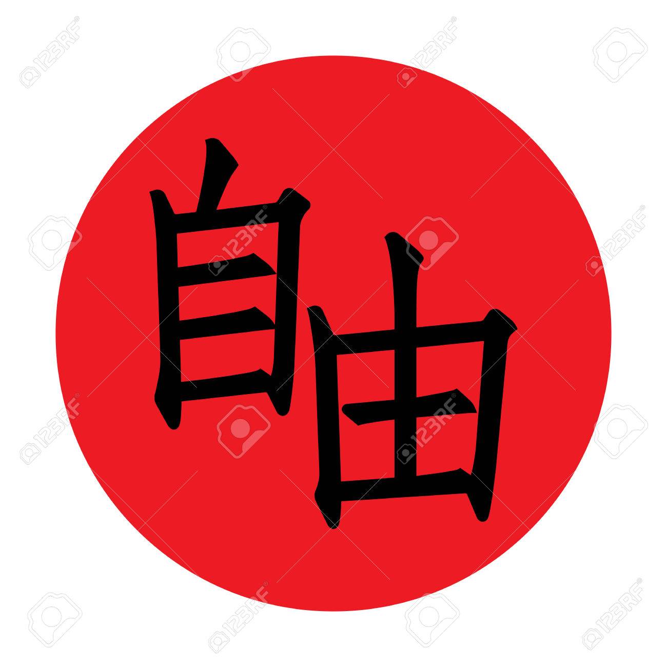 Vettoriale Sole Rosso Simbolo Del Giappone E La Parola Liberta Scritto In Geroglifici Image