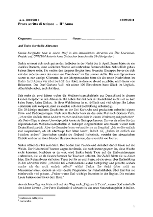 Esercizi Di Traduzione Tedesca Docsity