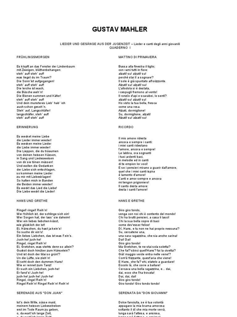 Mahler Lieder Traduzione Italiano