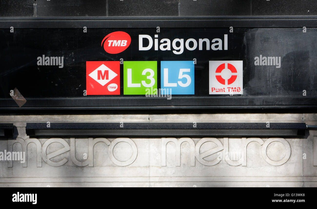 Barcelona Metro Sign Metro Station Diagonal On Paseo De Gracia Stock Photo Alamy