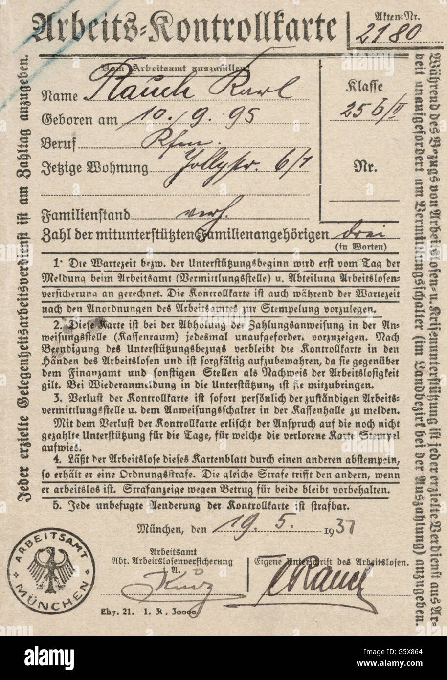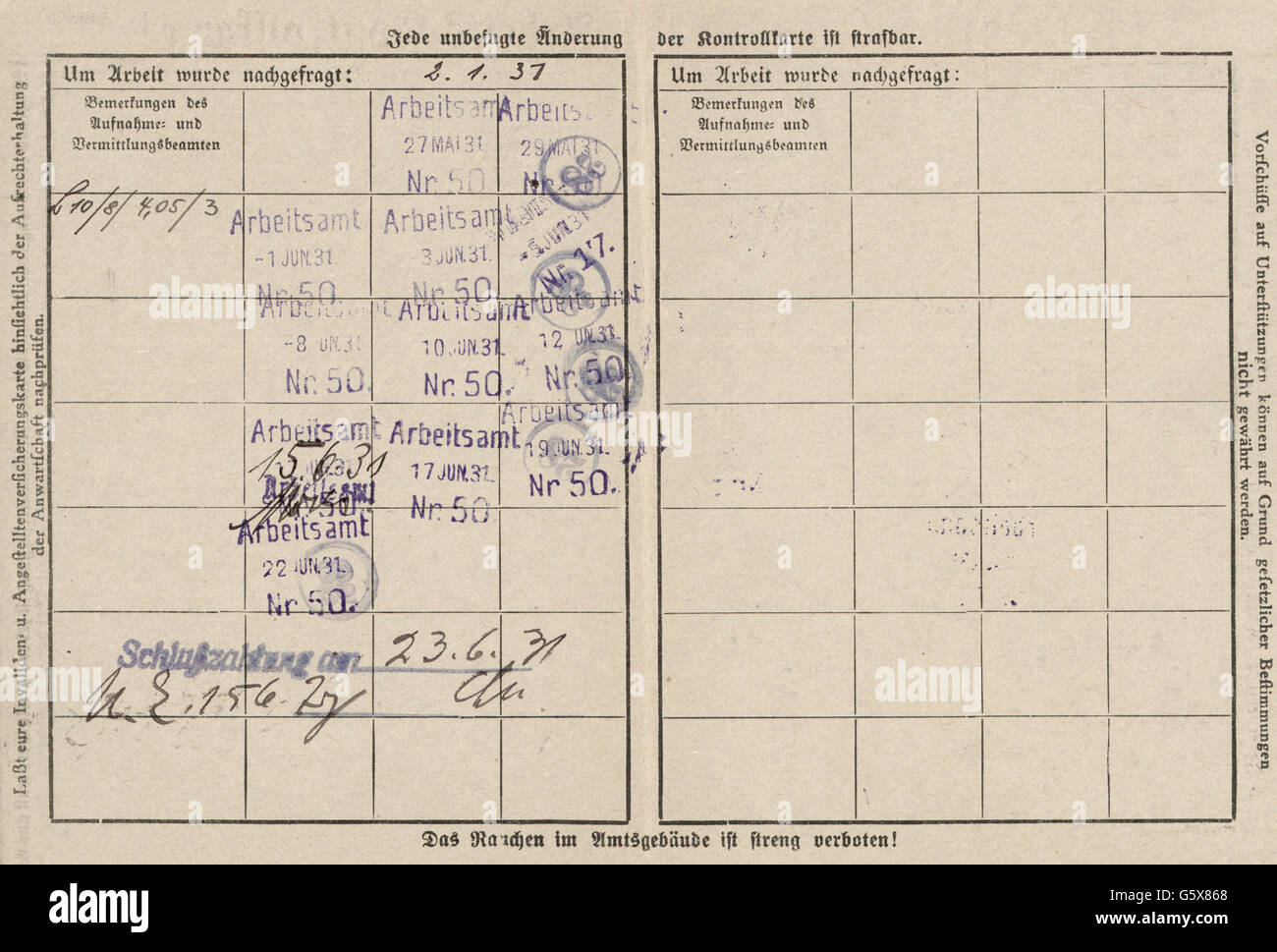 Documents Labour Control Card For The Merchant Karl Rauch Labour Stock Photo Alamy