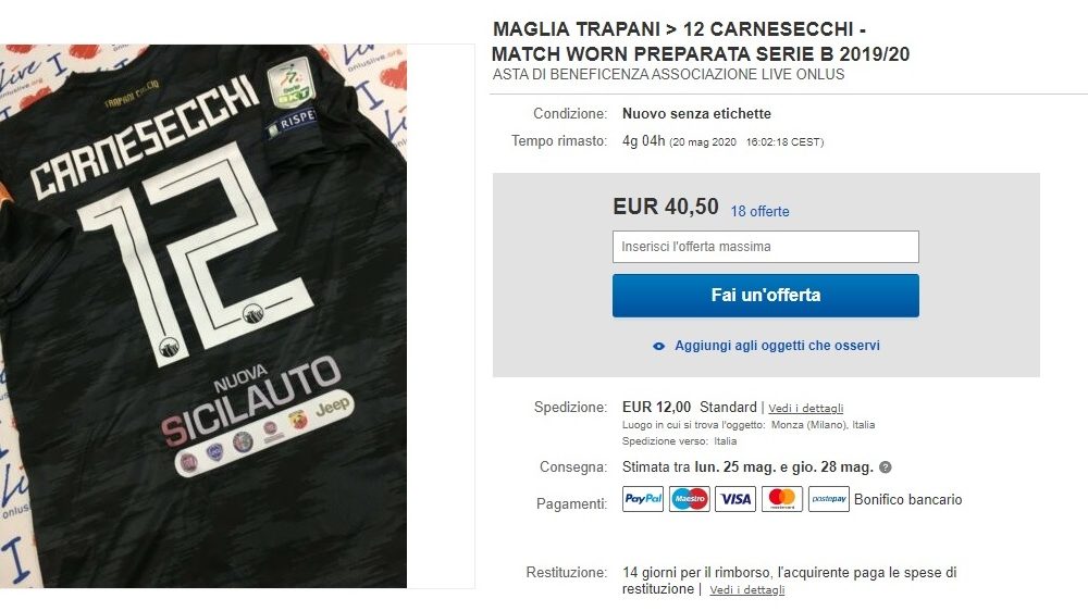 Trapani Carnesecchi Mette All Asta La Maglia Per Beneficenza Trapani Granata