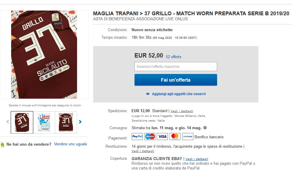 Trapani Grillo Mette All Asta La Maglia Per Beneficenza Trapani Granata