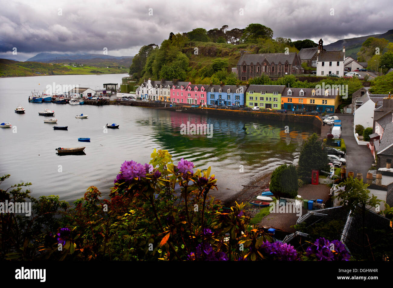 Immagini Stock Il Piu Grande Villaggio Sulla Isola Di Skye Portree Con La Sua Casa Colorata Vicino Al Loch Portree Scozia Regno Unito Image