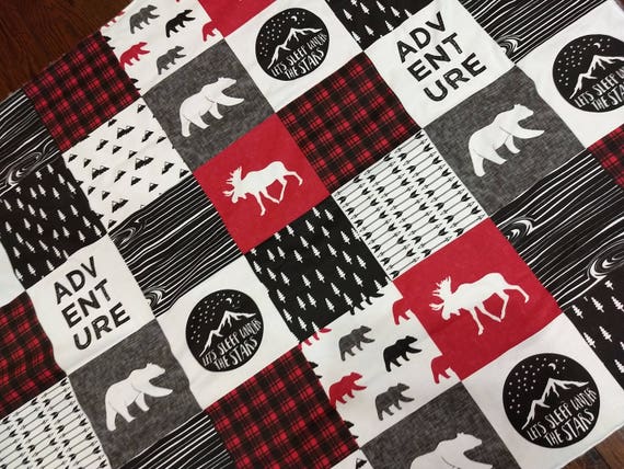 Baby Boy Minky Blanket Woodland Moose Bear Buffalo Plaid Etsy