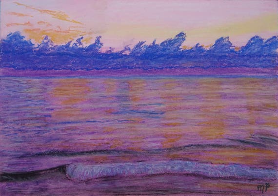 Relajante Puesta De Sol En El Mar Suave Dibujo Pastel Etsy