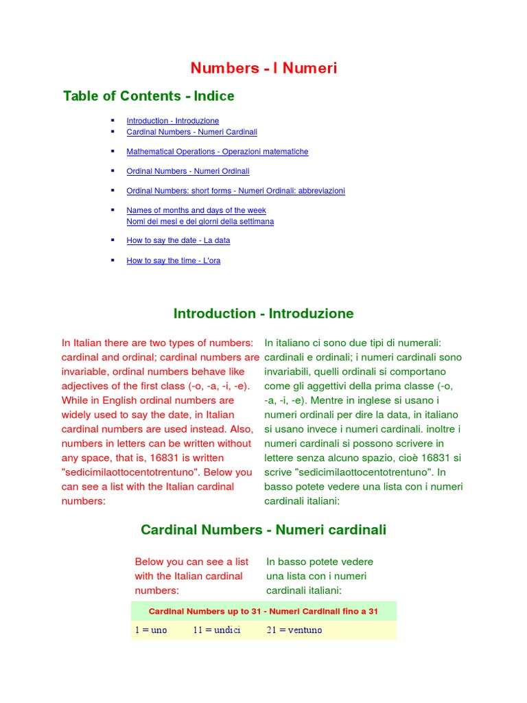 Numeri Ordinali E Cardinali Plurale