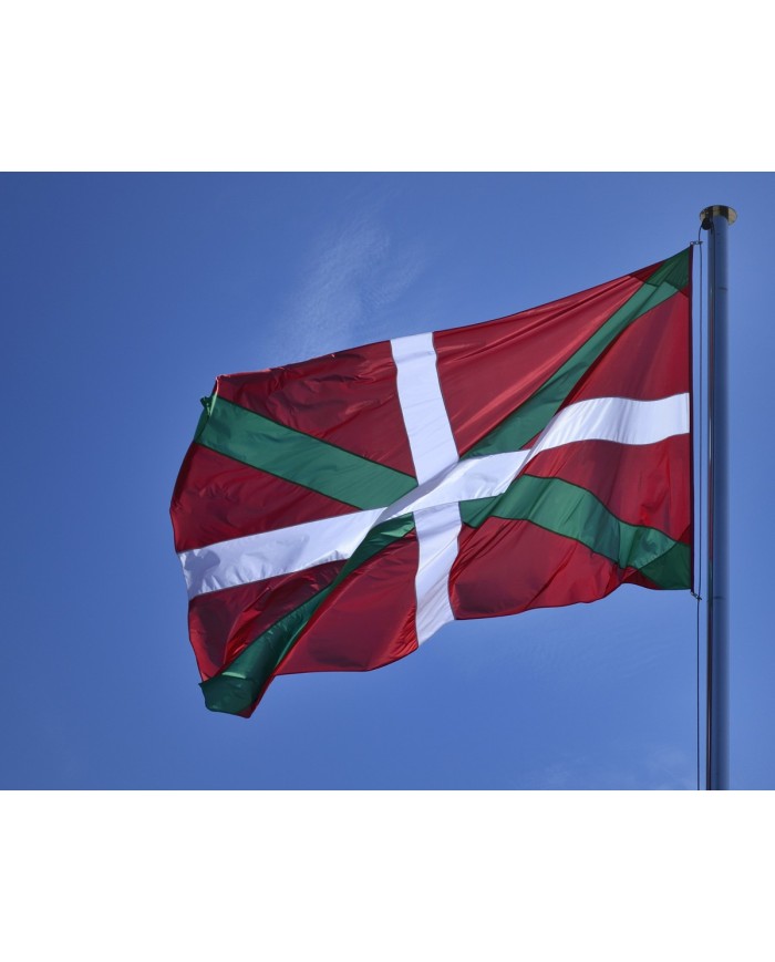 En 1979 se reconoció como bandera oficial de la Comunidad Autónoma del País Vasco, que incluye los Territorios Históricos Vascos de Araba, Bizkaia y Gipuzkoa y, hoy en día, es un símbolo institucional de nuestro país Es una bandera bicrucífera, compuesta de un fondo rojo bermellón, un aspa verde vivo y una cruz blanca superpuesta. Bandera del País VascoNo es solo una banderaTu Bandera debe impresionar y llenarte de orgullo mientras la ves ondeando o quizás colgada en tu pared, por ello no podemos ofrecerte cualquier material, sublimarlo y enviartelo En Tus Banderas te of. Bandera realizada sobre tejido 100 % poliéster de 117 gr/m2 Doble costura con hilo especial para exteriores Cinta de refuerzo Anillas de anclaje al mástil de acero con ollados Bandera realizada en uno o en varios tramos según medida Bandera de interior de sobremesa Bandera realizada sobre tejido 100 % poliéster de 117 gr/m 2.