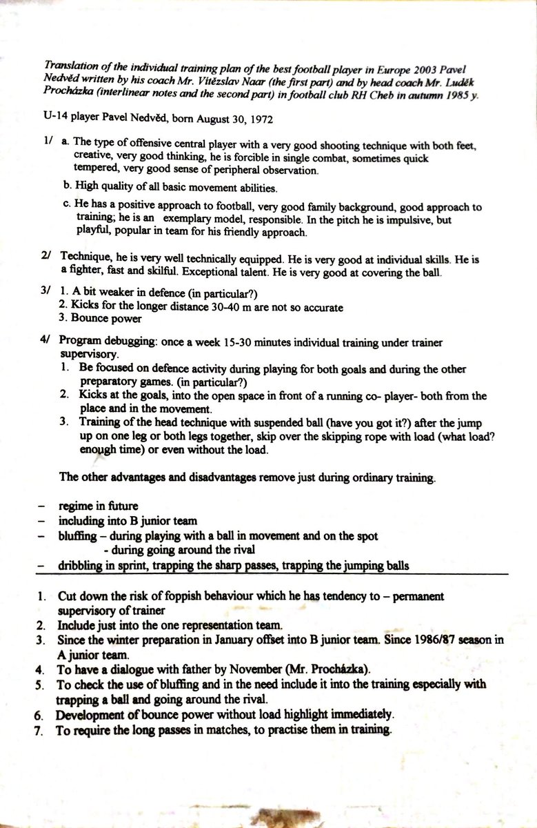 Richard Hood Details Pavel Nedved S Individual Training Plan From Way Back In 1984 When He Was With Dukla Praha Received This In 05 From Ludek Prochazka His Youth Coach As