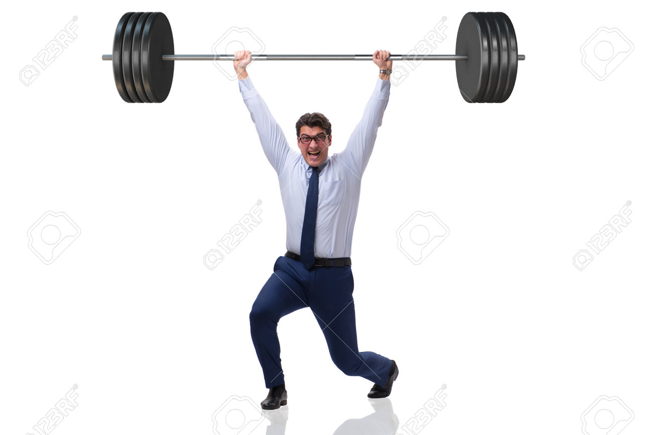 The Businessman With Barbell In Heavy Lifting Concept Stock Photo Image Of Isolated Male