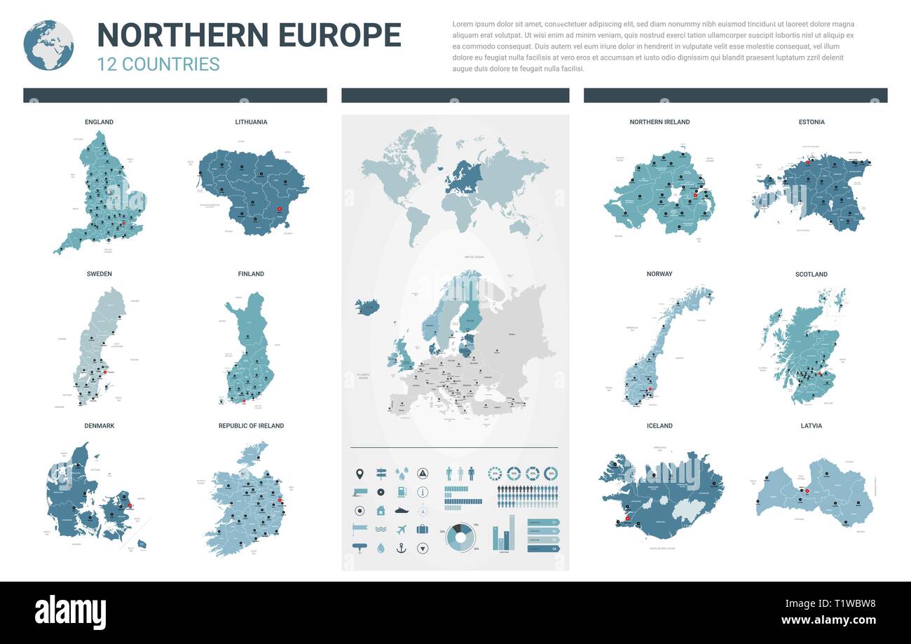 Mappe Vettoriali Set Alta 12 Dettagliate Mappe Di Paesi Del Nord Europa Con Divisioni Amministrative E Citta Mappa Politico Mappa Del Continente Europeo Immagine E Vettoriale Alamy
