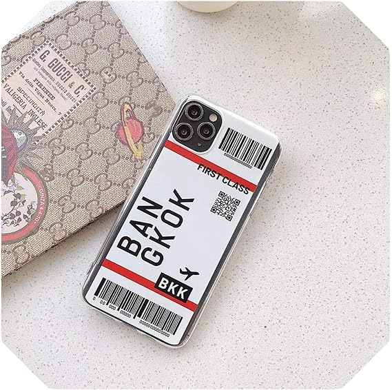 Amazon Com Ins Cute Air Ticket Boarding Pass New York Tokyo Seoul Case For Iphone 6s 7 8 Plus 11 Pro X Xs Max Luxury Clear Bar Code Cover Bangkok For Iphone 11
