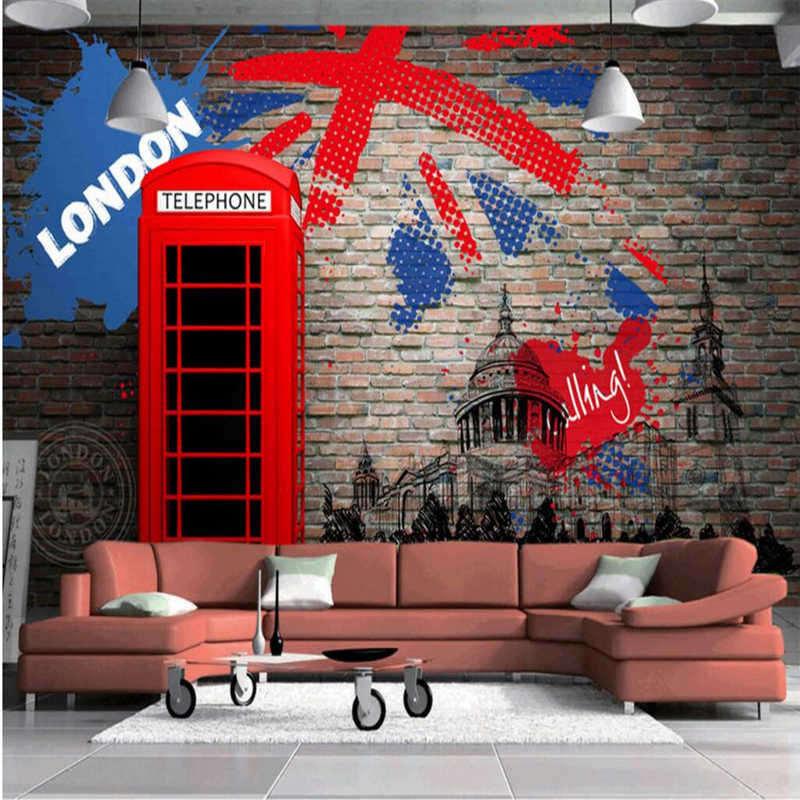 Beibehang Retro Stereo Red Phone Booth Graffiti Mural Murales Inglese 800x800 Wallpaper Teahub Io