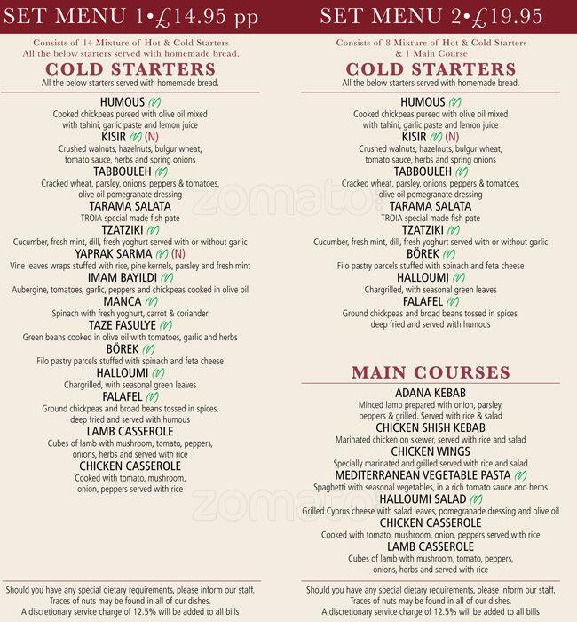 Troia A London Foto Del Menu Con Prezzi
