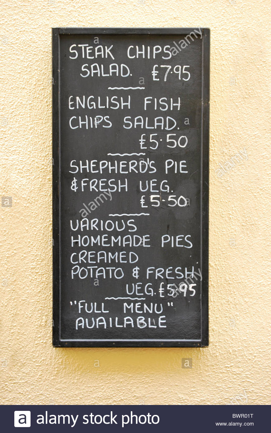 Blackboard Annunciando Il Menu Tipico Cibo Inglese Foto Stock Alamy