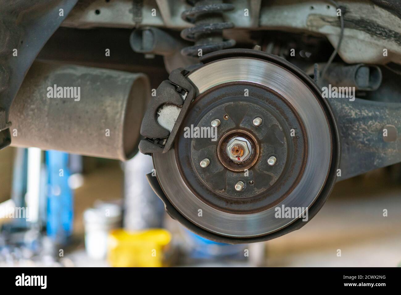 The Hub Of A Wheel In A Car Service Suspended Car With No Wheels Suspension Of Car In Service Room The Car Lift Up By Lifter For Maintenance Stock Photo Alamy