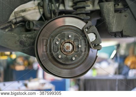 The Hub Of A Wheel In A Car Service Suspended Car With No Wheels Suspension Of Car In Service Room The Car Lift Up By Lifter For Stock Image Image Of Garage