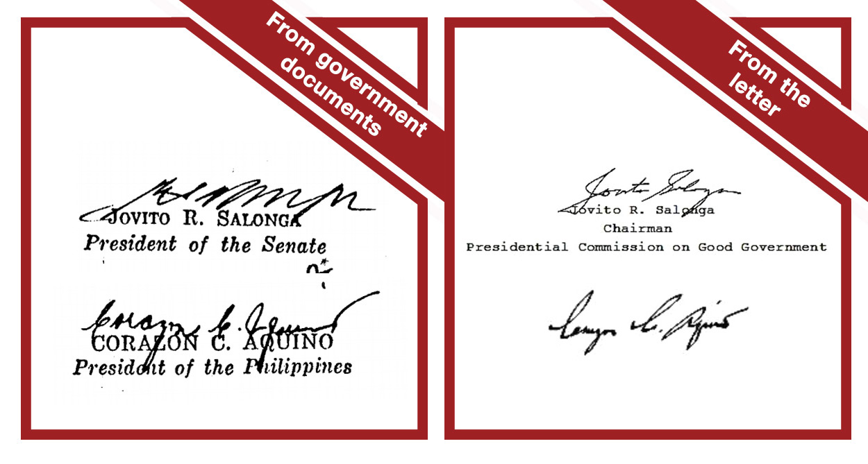 False Jovito Salonga S Letter To Cory Saying Marcos Had No Ill Gotten Wealth