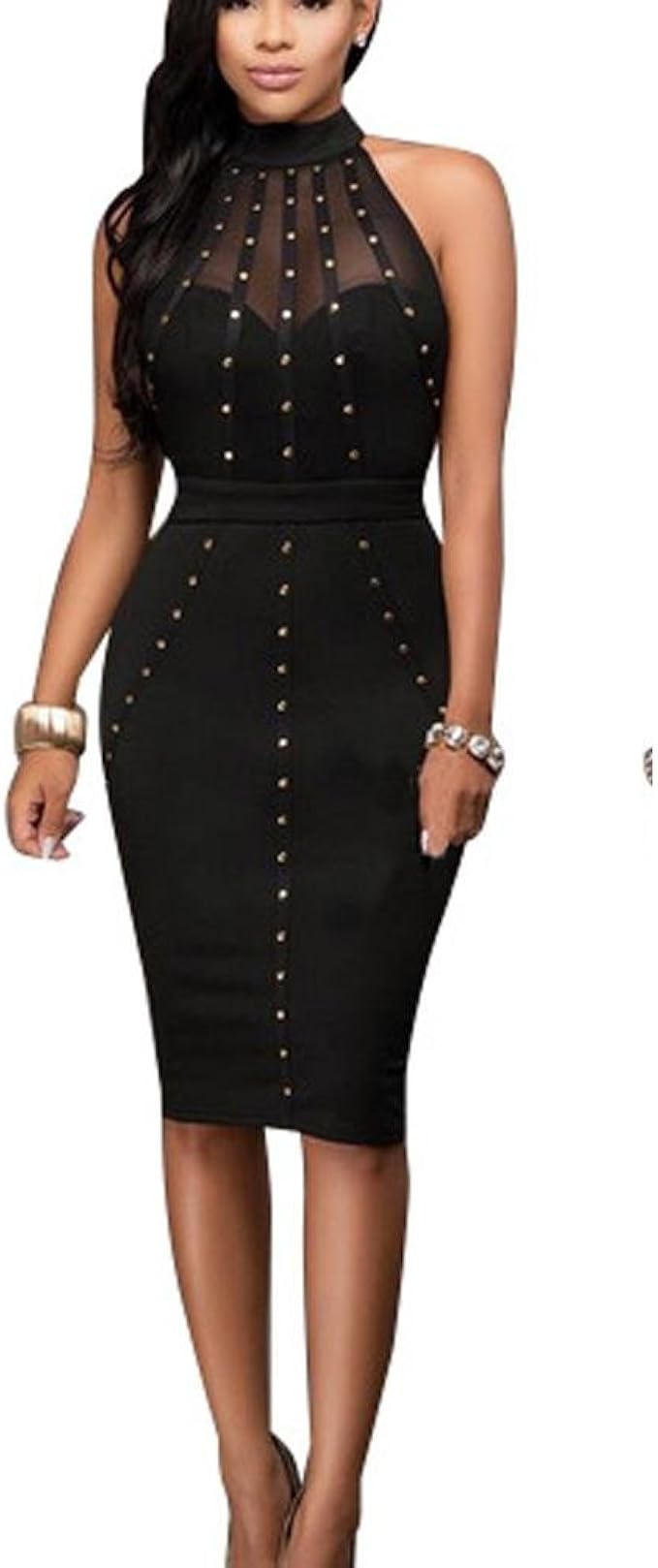 Perline Senza Maniche Sottile Abito Da Sera Occasione Prospettiva Collo Alto Hollow Indietro Donna Elegante D Epoca Vestito Da Cocktail Amazon It Abbigliamento