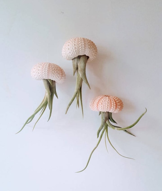 Jellyfish Air Plants Pink Sea Urchin Shell With Hanging Air Etsy