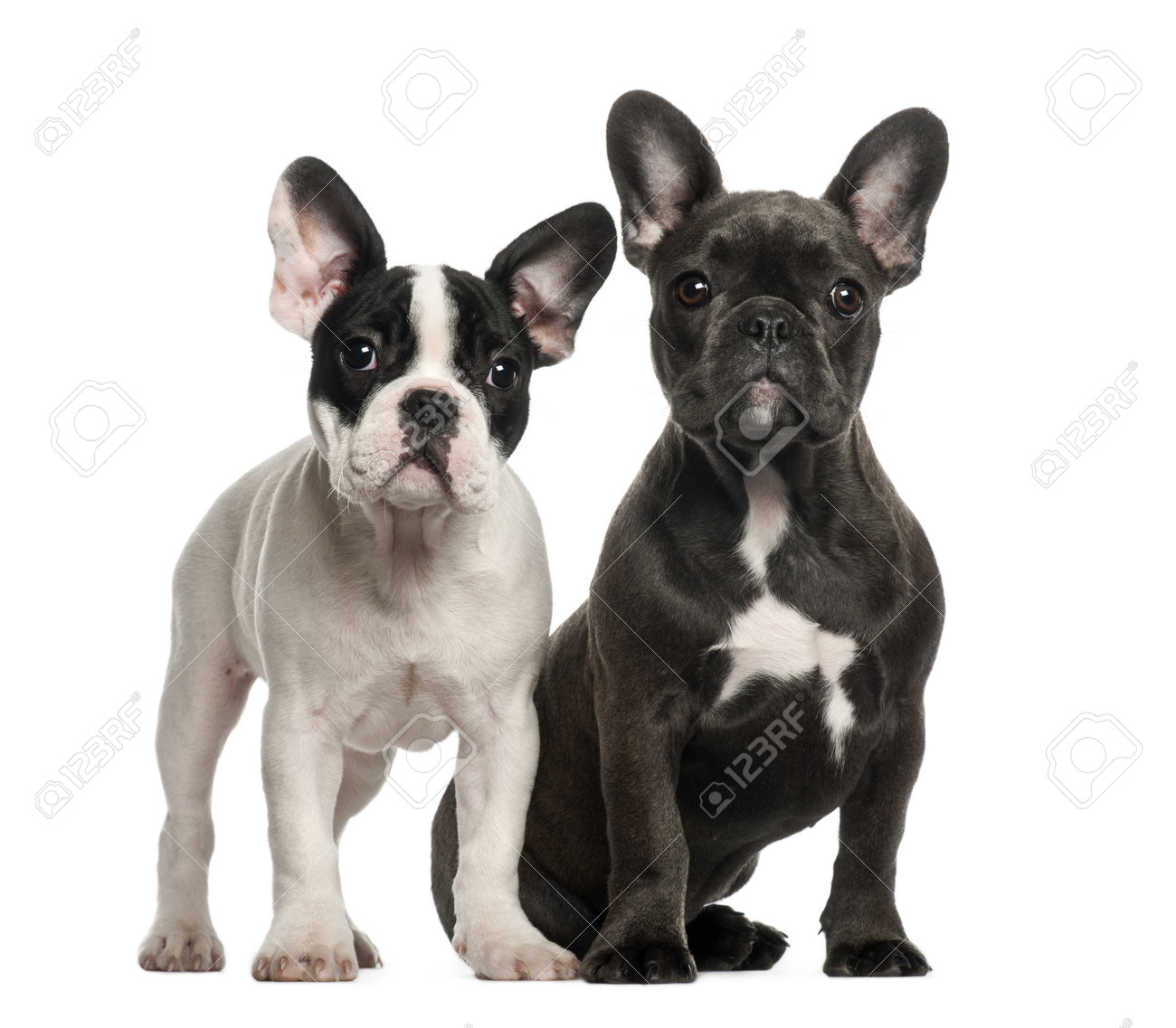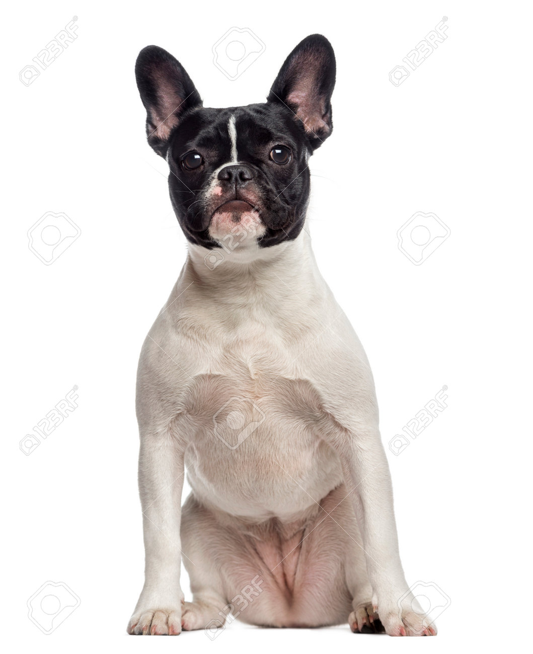 Immagini Stock Cuccioli Di Bulldog Francese 4 Mesi Di Eta Seduta Su Sfondo Bianco Image