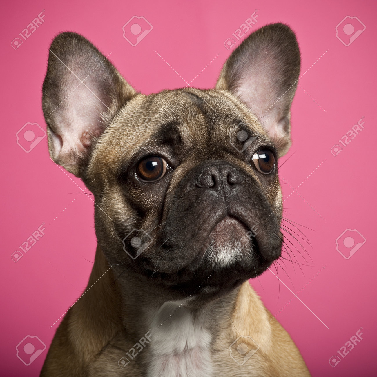Immagini Stock Bulldog Francese Cucciolo 5 Mesi Di Eta Su Sfondo Rosa Image