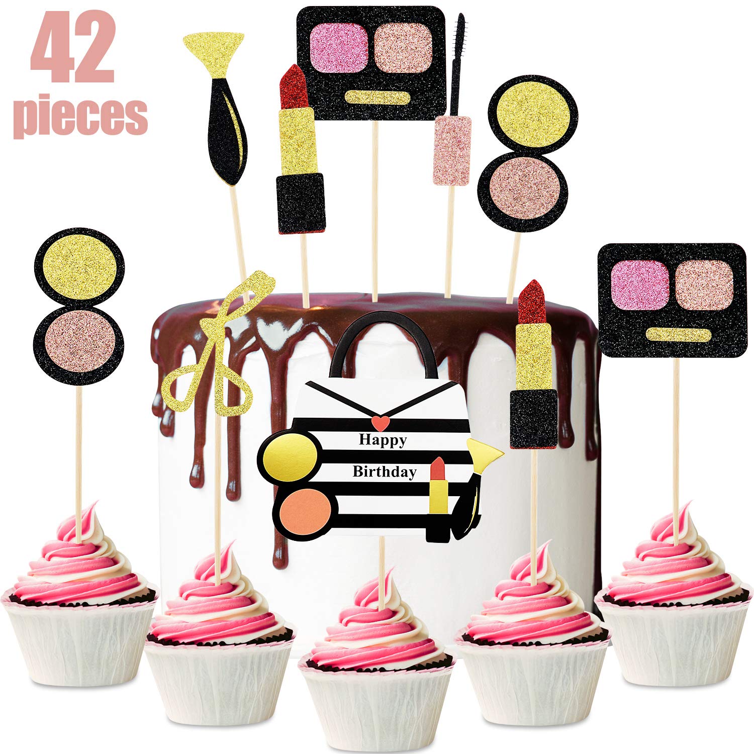 Amazon Com 42 Pieces Makeup Cupcake Toppers Glitter Cosmetics Cake Toppers Dessert Decoration For Women Cosmetics Theme Bridal Shower Girl Happy Birthday Party Cake Decoration Supplies Toys Games