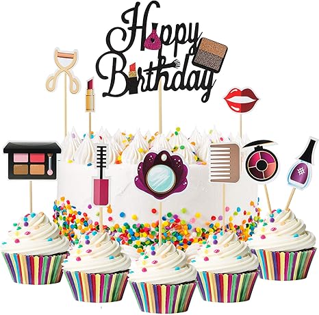 Amazon Com Kapokku Happy Birthday Makeup Cake Toppers Cosmetics Theme Party Cake Decoration Supplies For Girls Bachelorette Party Toys Games