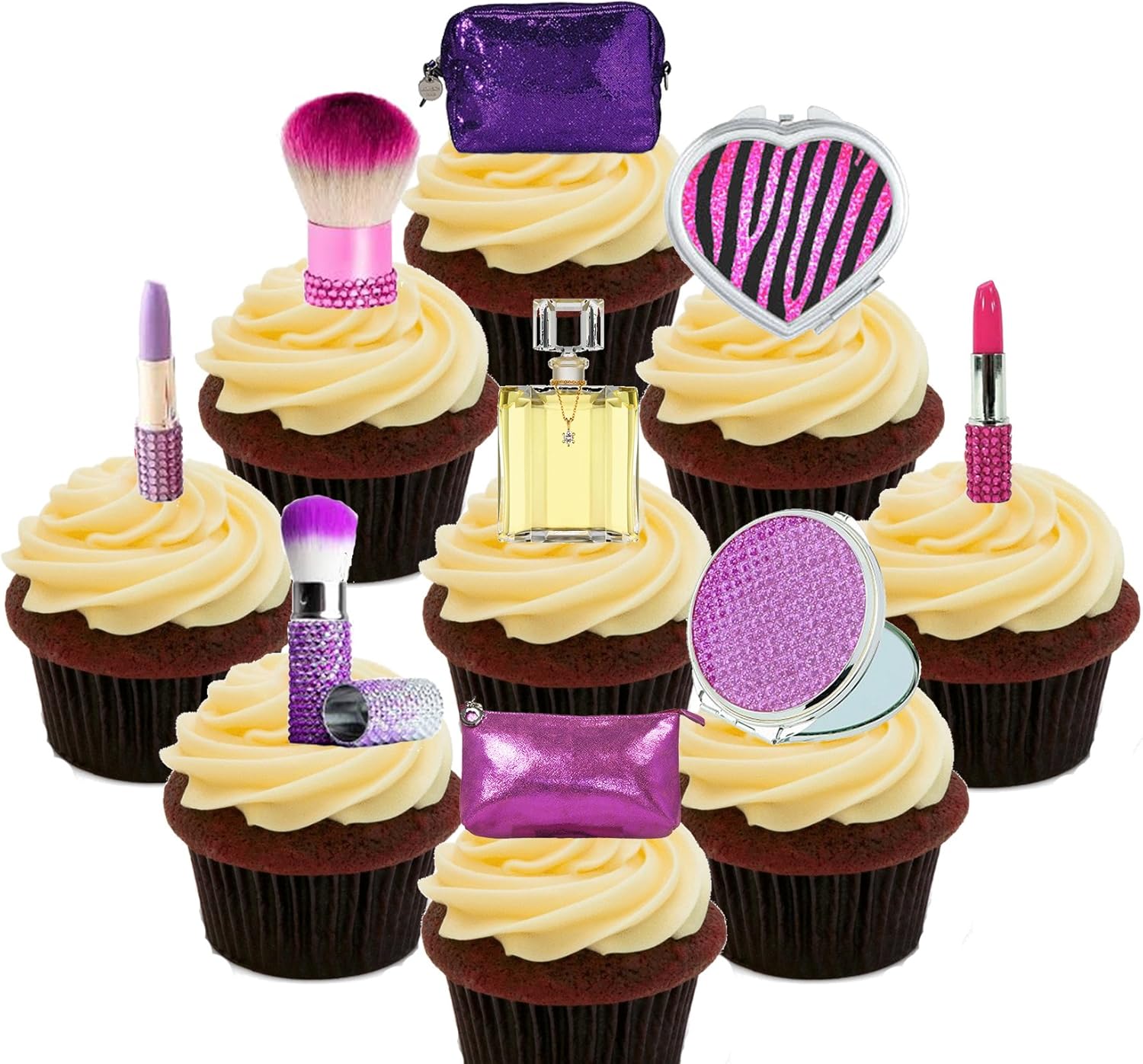 Glamour Party Pack Make Up Cosmetics Edible Cupcake Toppers Stand Up Wafer Cake Decorations Pack Of 36 Amazon Co Uk Kitchen Home