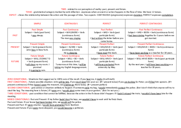 Schema Dei Tempi Verbali Inglesi E I Loro Corrispondenti In Italiano Docsity