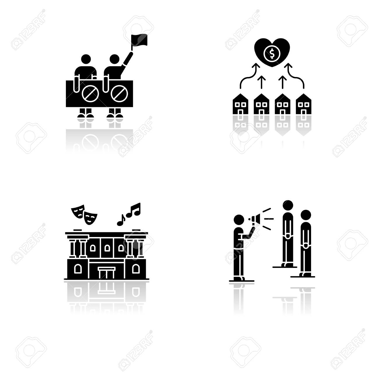 Social Life Drop Shadow Black Glyph Icons Set Human Right Protection Royalty Free Cliparts Vectors And Stock Illustration Image