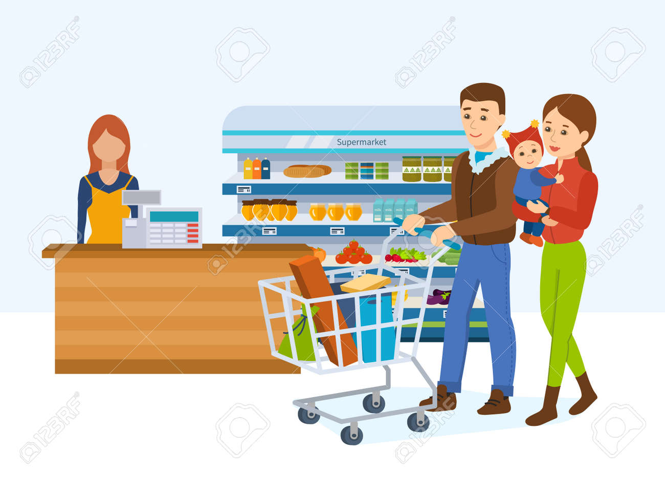 Family Walking Around The Store And Takes Fresh Food Royalty Free Cliparts Vectors And Stock Illustration Image
