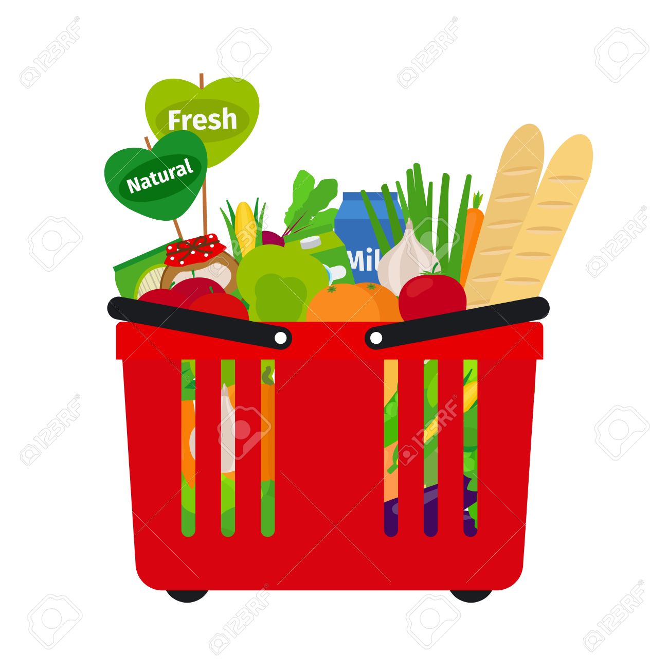 Supermarket Shopping Basket With Natural Fresh Food Vector Illustration Royalty Free Cliparts Vectors And Stock Illustration Image