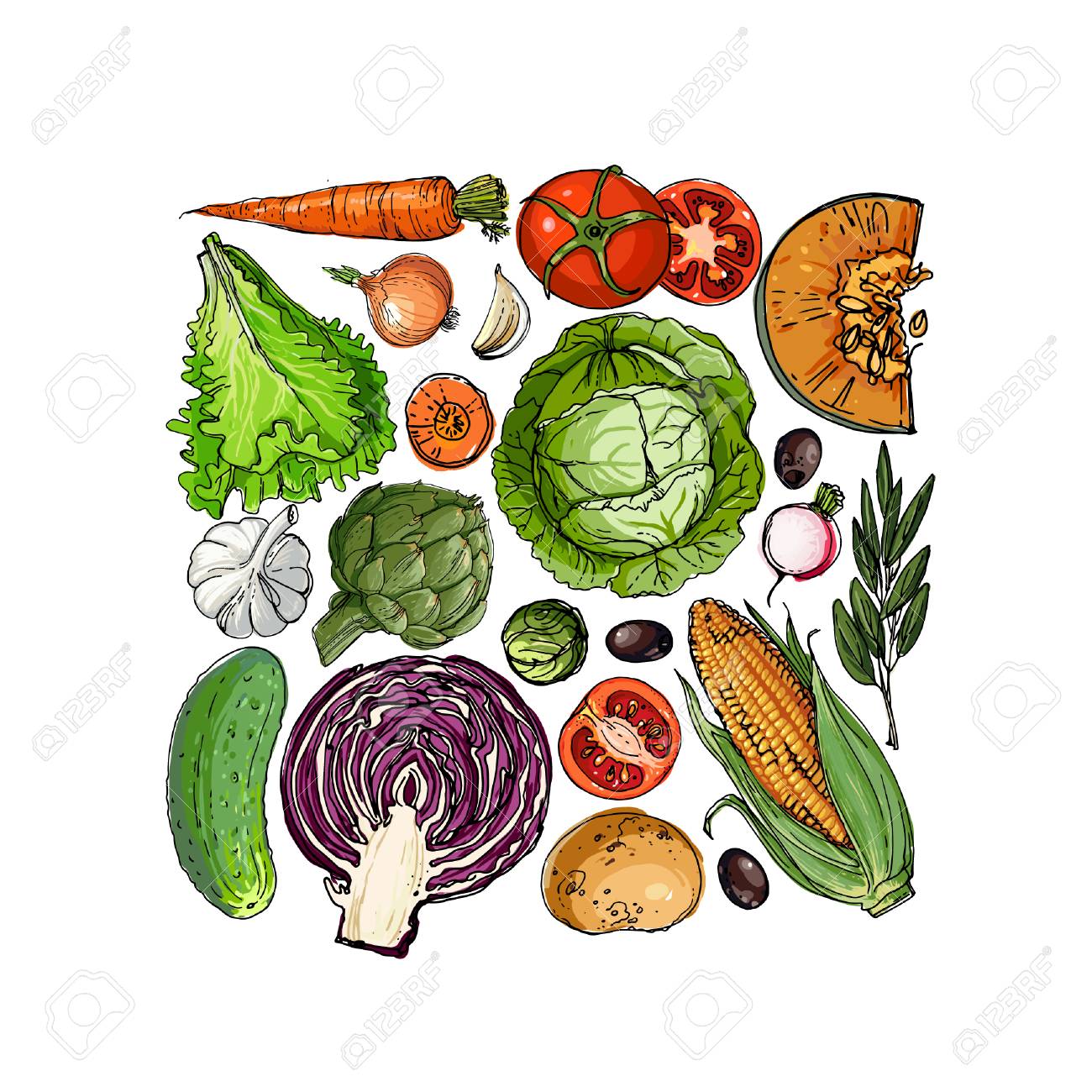 Square Of Colored Vegetables Fresh Food Royalty Free Cliparts Vectors And Stock Illustration Image