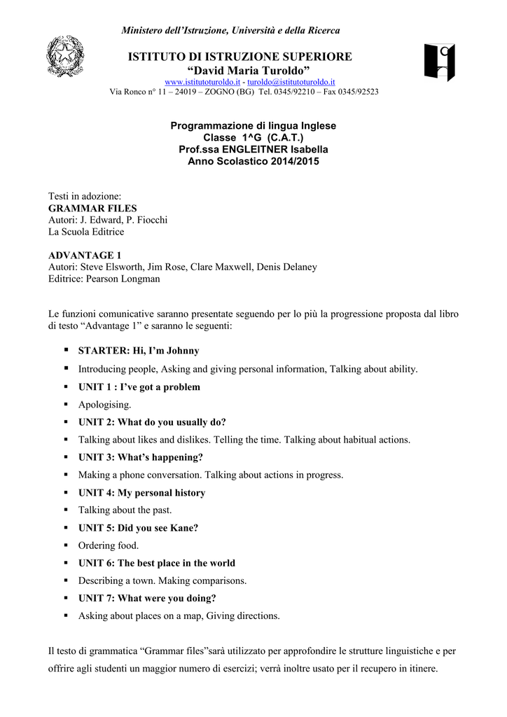 Www Orvietomontecchio Edu It Wp Content Uploads 18 12 Programmazione Inglese Classi Seconde 18 19 Pdf