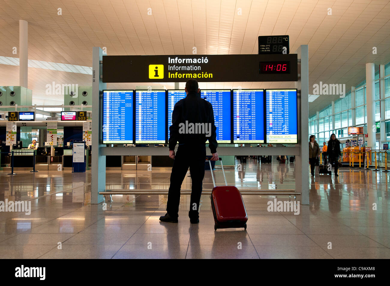 Maschio Adulto Passeggero Caucasici Con Trolley A Guardare La Scheda Di Partenze Barcellona Aeroporto Internazionale El Prat Spagna Foto Stock Alamy