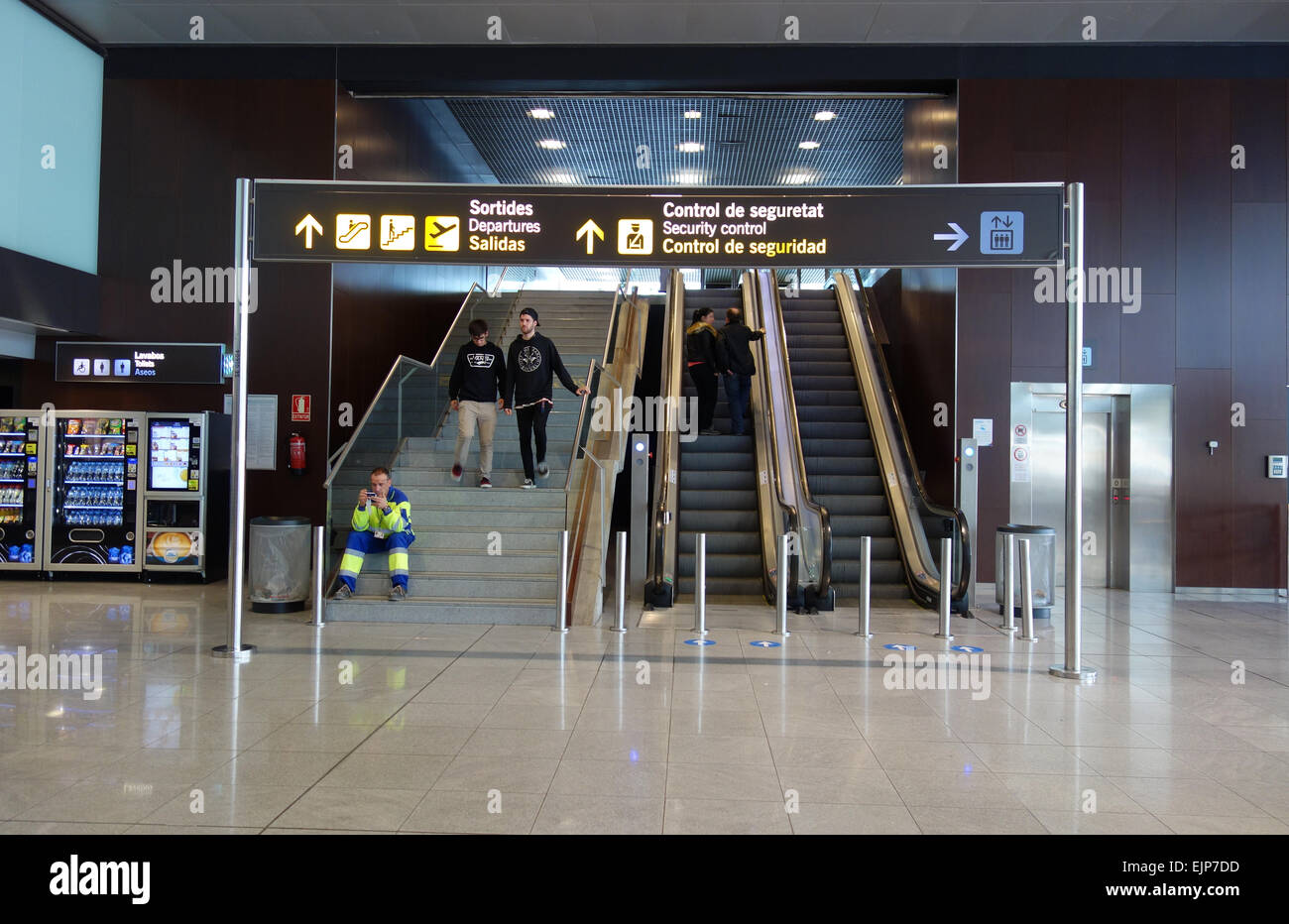 Scale E Scale Mobili Di Partenze All Interno Del Terminal 2 C Aeroporto El Prat Di Barcellona In Catalogna Spagna Foto Stock Alamy