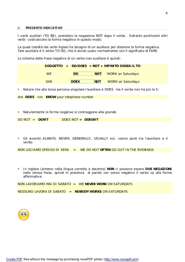 Per essa, infatti, alla forma affermativa si aggiunge s mentre alle forme negativa e interrogativa il "do" diventa "does" Per l'aggiunta della s alla terza persona singolare valgono le. Nella lingua inglese, come in tutte le altre lingue parlate, la frase è retta da uno o più verbi All'infinito i verbi inglesi prendono il TO davanti alla prima persona singolare del presente. Da questa pagina si può accedere agli esercizi sul presente semplice del verbo avere (have got) nelle sue varie forme affermativa, negativa, interrogativa, interrogativanegativa e risposte brevi Questi esercizi servono a rinforzare in maniera efficace le proprie conoscenze.