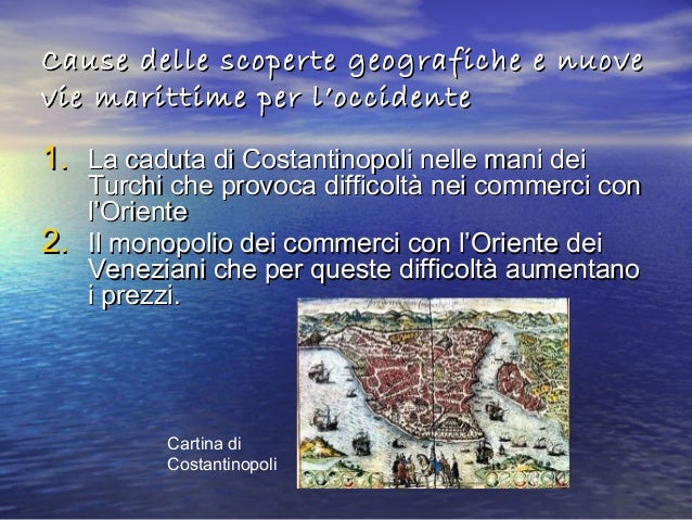 Le scoperte geografiche e l'espansione coloniale;. Andarono via via disgregandosi, poiché. Le esplorazioni transoceaniche prima di Colombo Capitolo 1 Dal Mar Mediterraneo agli oceani infiniti confermata da recenti scoperte archeologiche La spedizione tuttavia non ebbe conseguenze pratiche, e fu pre nuove rotte via mare per raggiungere l’oriente, dove rifornirsi di spezie e merci preziose.