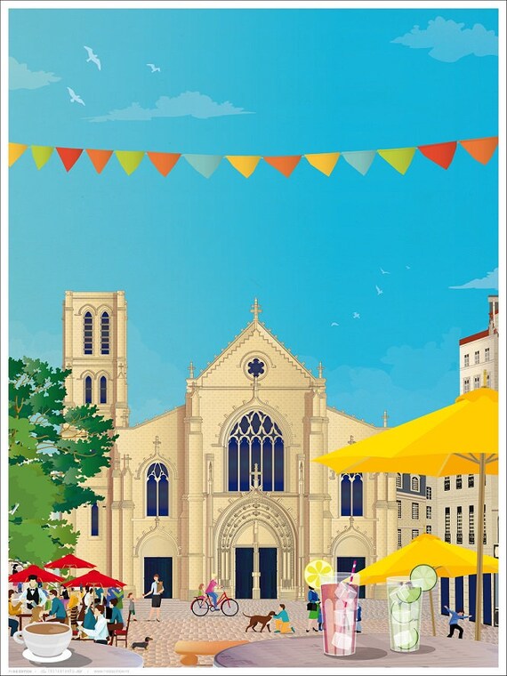 Illustrated Poster Place Saint Pierre Bordeaux Etsy